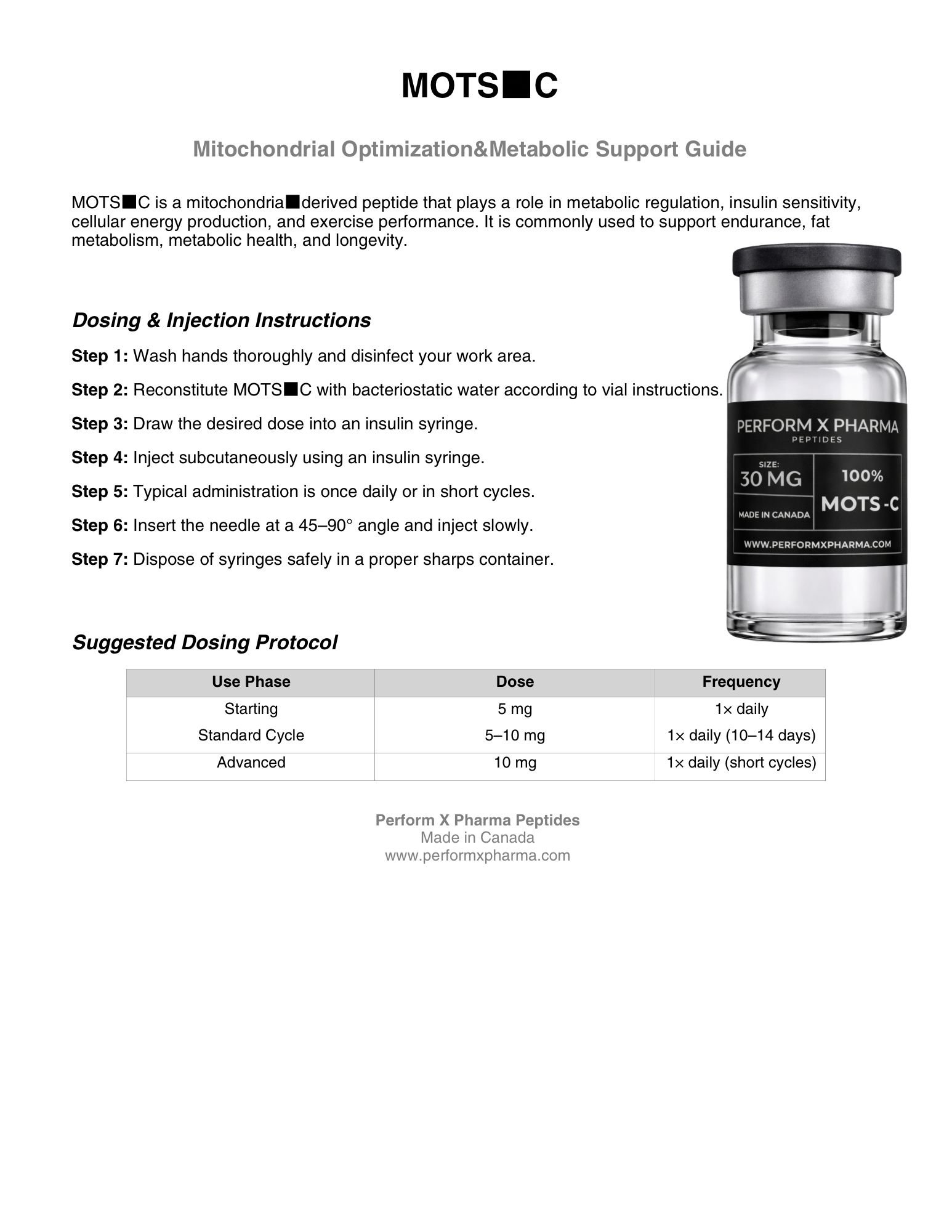 MOTS-C suits beginners enhancing metabolism and pros stacking for efficiency. Injected daily or weekly, it aligns with training and diet for a lean, energized physique. Its novel mitochondrial focus offers longevity and vitality—a standout peptide for metabolic optimization, with minimal side effects.